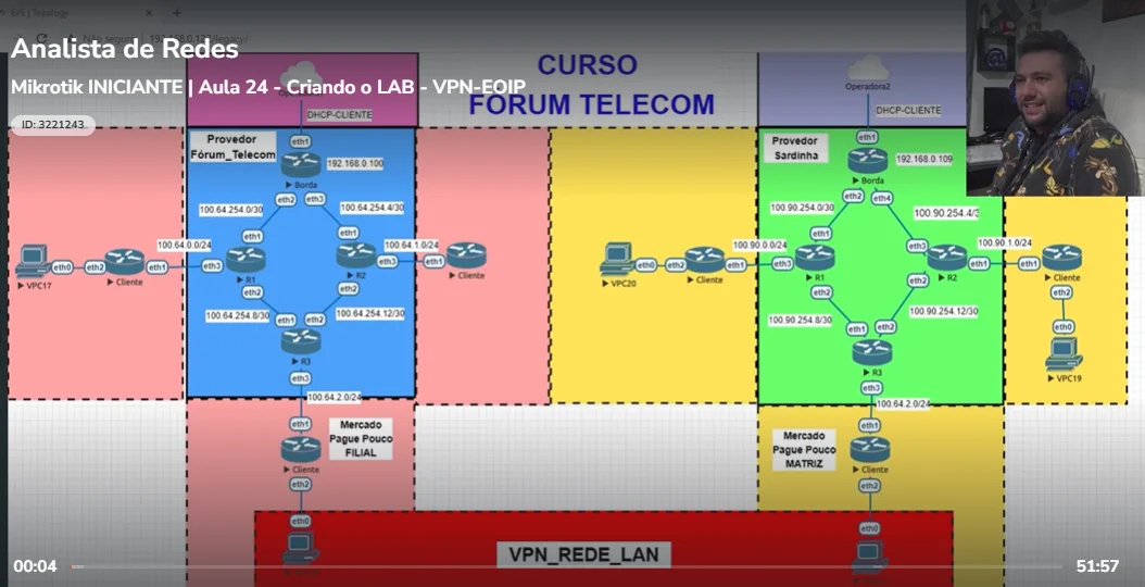Você vai sair dominando MikroTik, Linux, VLANs, BGP, CGNAT e muito mais, sem enrolação.